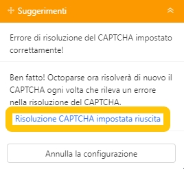 Clicca su Risoluzione CAPTCHA impostata riuscita per completare i passaggi finali.